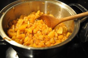 - Combine apples and all other ingredients in a medium sized sauce pan and simmer for 30-40 minutes